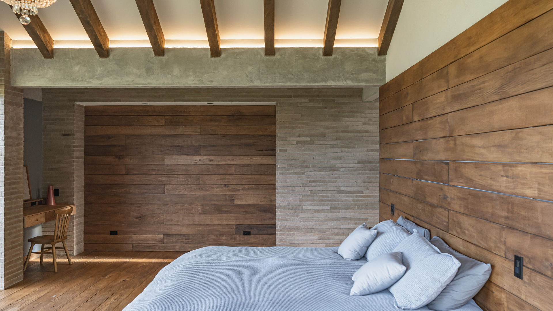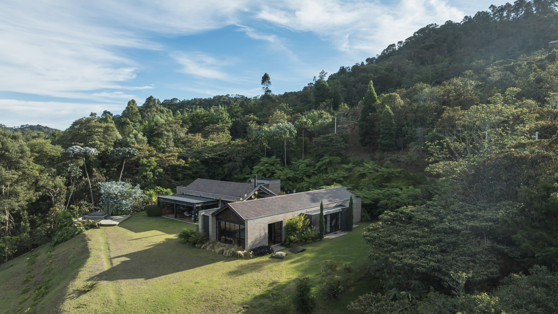 En Rionegro, Antioquia, se levanta Casa Pontezuela, una vivienda unifamiliar concebida como refugio y espacio de contemplación. El proyecto aprovecha la topografía y el paisaje circundante para integrar naturaleza, luz y arquitectura en un diálogo constante. Los espacios sociales —sala, comedor y cocina— se abren hacia terrazas y jardines, extendiendo la vida interior al exterior y favoreciendo la convivencia. Las áreas privadas se ubican en zonas más reservadas, garantizando calma e intimidad, mientras que ventanales y patios internos conectan cada ambiente con la luz natural y el paisaje. La materialidad combina piedra, madera, vidrio y concreto expuesto, logrando un equilibrio entre solidez y calidez. Los ventanales de piso a techo enmarcan vistas únicas y permiten ventilación cruzada, mientras que los acabados resaltan la interacción entre luces y sombras, transformando la experiencia de habitar a lo largo del día. Casa Pontezuela encarna la filosofía de ASR Arquitectura: pocas casas, pero memorables. Un hogar diseñado para vivir profundamente, donde cada detalle tiene un propósito y la arquitectura se funde con el entorno para ofrecer serenidad, encuentro y permanencia.